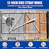 Yaocom 4 Pack 12" Zinc Strap Hinge for Gates, Tool Sheds, Barns and Other Swing Doors