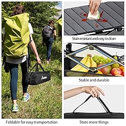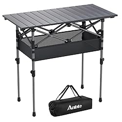 - Anbte Outdoor Camping Table - Heavy-Duty & PortableDiscover the perfect outdoor companion with our professional camping table, featuring a durable aluminum top and sturdy steel frame. This rv table combines lightweight portability with exceptional stability, making it ideal for all your outdoor adventures.Premium Dual-Material ConstructionExperience the ideal balance of strength and lightness with our aluminum tabletop and steel frame combination. The weather-resistant aluminum surface ensures easy cleaning and corrosion resistance, while the robust steel legs and crossbars provide reliable support for weights up to 45kg/100lbs.Flexible Height AdjustmentAdapt to any outdoor scenario with two practical height settings - 44cm for comfortable seated use and 70cm for convenient standing preparation. The reinforced steel legs maintain excellent stability even on uneven terrain, perfect for beaches, campsites, and backyard gatherings.Ultra-Portable DesignWeighing just 4kg/8.8lbs, this roll up table packs compactly into the included carry bag (18.5"×9.8"×6.5"). The complete set stores easily in car trunks, RV compartments, or camping storage, while the handy mesh basket keeps your essentials organized and accessible.Weather-Resistant & Easy MaintenanceThe aluminum tabletop resists stains, water damage, and rust, requiring only a quick wipe for cleaning. Steel components feature protective coatings to withstand outdoor elements, ensuring long-lasting performance through seasons of use.Perfect For: Camping trips, beach outings, tailgate parties, fishing expeditions, backyard BBQs, picnics, and outdoor workshops. The spacious 82x40cm surface provides ample room for food preparation, dining, or equipment organization.