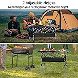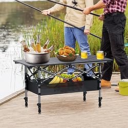 X-Shaped Structure, High Load-Bearing Capacity and Stability: Featuring an X-shape support bracket, the outdoor camping table forms a stable triangular structure. Made from strong steel, it supports up to 100lbs, offering durability and reliability for heavy-duty use in diverse settings 2 Adjustable Heights Max 27.5": Anbte foldable camping table offers two height settings of 17.32 inches and 27.55 inches. You can adjust the height according to your needs to adapt to different occasions. Bring you the most comfortable experience Convenient Storage Mesh Basket for Additional Space: The spacious mesh basket beneath the tabletop adds extra storage space, keeping your essentials organized. Perfect for storing snacks, utensils, or gadgets, enhancing your outdoor or indoor experience Heat-Resistant & Easy-Clean Aluminum Tabletop: The sturdy aluminum tabletop safely supports portable camp stoves and grills, providing a stable, heat-tolerant surface for direct outdoor cooking. You can confidently place your cooking equipment on the table while maintaining easy cleanup - simply wipe with a damp cloth after use. This practical design makes outdoor meal preparation more convenient while ensuring lasting durability Portable & Easy To Install and Fold Up: Weighing only 8.8 lbs and equipped with a storage bag, Anbte portable camping table is highly portable and space-saving. Ideal for storing in cars, RVs, or motorcycles Multifunctional Table for Various Occasions: This folding camping table serves perfectly as BBQ side table, picnic table, fishing table and tailgate table with ample space for family camping, outdoor dining and recreational activities for both adults and kids