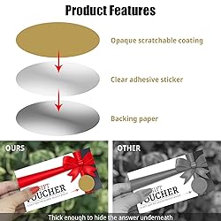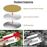 Includes 3 Sheets 90 pack scratch off stickers, each 1 inch in diameter, providing ample quantity for your DIY projects and event needs The self-adhesive design ensures easy application and strong bonding, with a smooth surface for a clean scratch-off effect. Scratch stickers are durable and convenient for creative use Perfect for DIY projects, interactive games, and personalized scratch off cards for events like bridal showers, birthdays, or classroom activities. These stickers add excitement and surprise to any occasion Simply write your message on the card, cover it with the scratch off label, and reveal the content by scratching with a coin or similar tool. A protective film ensures your text stays intact Whether used as custom scratch off cards, mystery games, or party favors, these scratcher stickers bring creativity and engagement to your projects