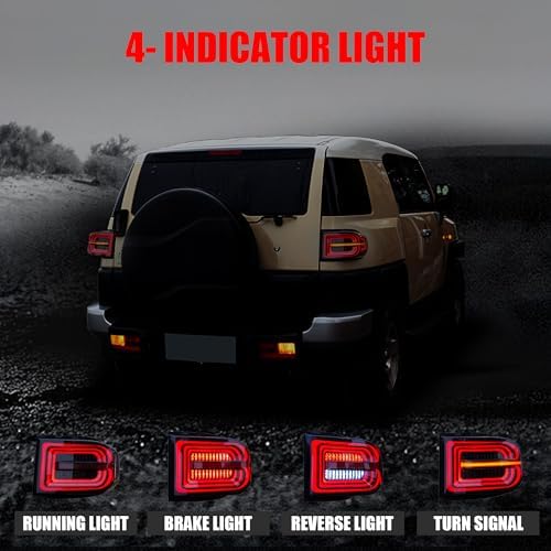 - 【Easy Installation】No need for any assembly, no need to replace any accessories, and no need to Modify any part. Compatible with Toyota FJ Cruiser tail lights assembly is Plug-and-Play designed. Easy to Install and Quick response to help safer travel. It is highly recommended to use a professional for installation.