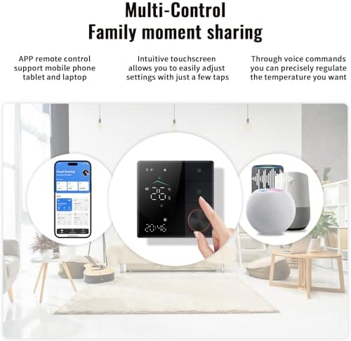 - 【Remote Control & Voice Control】Supports local sharing for multi-terminal control; control and monitor your smart thermostats for home from three aspects: LED touch screen, app, and voice input. Adjust the temperature precisely to your desired level anytime, anywhere, and enjoy seamless connectivity and operation for your smart home