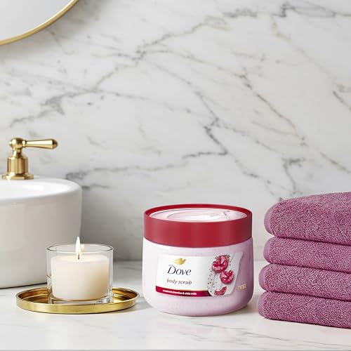 - REVITALIZES SKIN: Dove Exfoliating Body Scrub with Crushed Cherries & Chia Milk provides lasting nourishment, cleans and scrubs to reveal revitalized skin