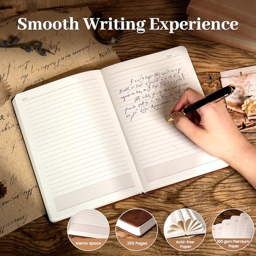 - 【Premium Paper for Smooth Writing】: Indulge in a luxurious writing experience with our 256 page journal for writing, have silky smooth surface for every stroke of your pen. The paper is made of 100 GSM premium thick paper, which is thicker than normal notebooks, effectively minimizes ink bleed-through and feathering, suitable for most pens, pencils, markers.