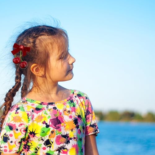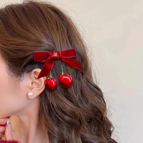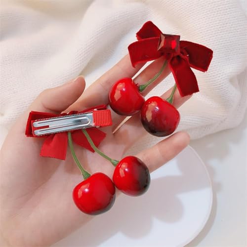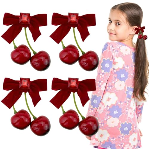 4 PCS Red Cherry Hair Claw Clip,Cute Hairpin Realistic Cherry Hair Clips,Girl Christmas Bowknot Hairpins Fruit Hair Clips Hair Accessories for Girls