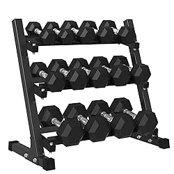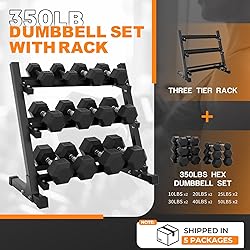 [ERGONOMIC KNURLED HANDLE] This dumbbell handle features a chrome-plated surface and a medium-depth knurled design, not only enhancing grip but also enhancing safety. Its ergonomic structure effectively distributes pressure and provides a comfortable grip, reducing the burden on the hands over long periods of use and making operation more effortless and stable. [CONVENIENT STORAGE SOLUTIONS] The dumbbell rack features a steel frame with a durable black powder coating, ensuring stability and longevity for long-term use. All dumbbell sets come with a standard 3-tier weight storage rack: the 350 lb set uses a slightly smaller rack, while the 450 lb and 550 lb sets share the same rack size. [STURDY AND DURABLE] The hexagonal rubber-encased head design effectively prevents the dumbbell from rolling and makes storage more convenient. High-quality solid cast dumbbells are wrapped in rubber, not only able to withstand intense workouts but also protect the floor from damage, resist rust and wear, ensuring that the dumbbells maintain their durable performance for years of use. [VERSATILE EXERCISE KIT] Mikolo offers a wide selection of weights, with dumbbells weighing 5 lb in a class, the smallest weighing 5 lb and the largest weighing 50 lb. We also offer 3 common weight combinations, 350/450/550 lb dumbbell weight sets. You can choose according to your training needs. [MULTIPLE TRAINING PURPOSES] Dumbbells are widely used in gyms and homes for various exercise purposes, whether for full-body workouts or targeted muscle groups, and can be used for exercises such as bicep curls, triceps extensions, Russian twists, and chest presses.