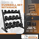- Mikolo Dumbbell Sets with Rack, Rubber Hex Dumbbells, Multiple Choices in 350/450/550 lb, Hand Weights with Chrome Handle for Strength Training