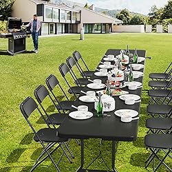 VINGLI 8 Foot Plastic Folding Table Portable Long Table for Indoor Outdoor Use Rectangular with Carrying Handle, Black