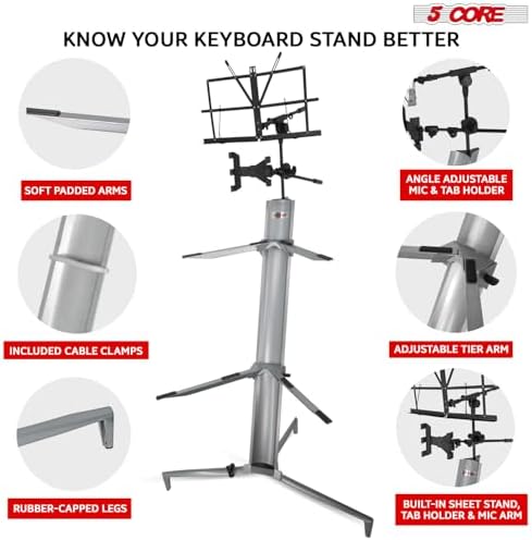 5 CORE Keyboard Stand 2 Tier Column for 61/76/88 Key Board DJ Controller Stands for Electric Digital Midi Pianos Silver - KS C 2TD SLV AL