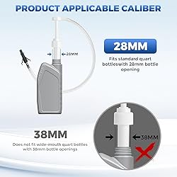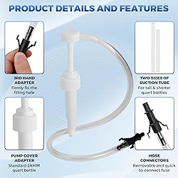 【Multiple Applications】Gear oil pump Fits for standard quart bottle and suitable for 28mm bottle cap,The third hand adapter holds the filler tube in place while pumping, Differential fluid pump The plunger pump is designed to be screwed in and secured. 【Long And Short Suction Tubes】2025 Upgraded model with strong suction power fluid pump automotive 10CC per pump stroke, Easily press down,slippery pete fluid pump Comes with 2 Rigid Suction Tubes to ensure the pump can reach the battom of tall and short bottles. 【With 3rd Hand Adapter】Fluid pump Made of high-quality plastic material,Sturdy,Corrosion resistant and nice durability.fluid pump for quart bottles Use to fixes filling tube during pumping,Offering convenience and ease of use. 【Widely Used】The liquid transfer pump is suitable for ships, Automobiles,RVs, Trucks, Motorcycles and other daily applications,Be used for oil change,Antifreeze fluid,Engine/motor oil,Transmission fluid,Transformer Oil,Etc . 【Function】Lower unit gear oil pump 19.5 inch long hose used to pump fluid to narrow and inconvenient areas.Safe Transfer,Enables precise fluid transfer between containers, Or from container to engine, Gear oil transfer pump cooling system, and more.