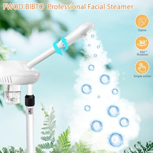 - 【Facial Steamer Professional】FWOD BIBTO facial steamer has equiped with an upgraded atomizing cartridge, it produces large hot mist, The hot ionic steam can open pores for deep cleaning, improved skin textureefficient hydration smooths and softer the skin.