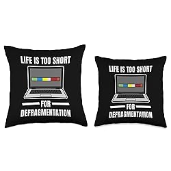 100% Polyester "Life Is Too Short For Defragmentation" features a bold design with a laptop displaying a colorful fragmented bar, humorously highlighting the efficiency of Linux systems. A perfect gift for Linux enthusiasts, system administrators, software developers, IT professionals, and tech-savvy individuals who appreciate operating system humor. 100% spun-polyester fabric Double-sided print Filled with 100% polyester and sewn closed Individually cut and sewn by hand Spot clean/dry clean only