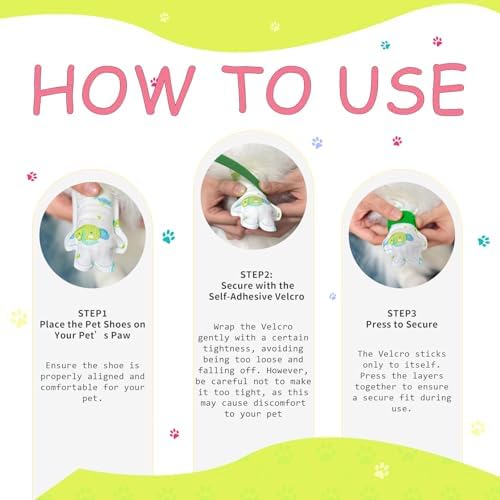 - 【Easy to Use & Secure Fit】: Simply slide the disposable pet booties on, secure with the Velcro, and your pet is ready to go. Please note that the Velcro strips are reusable. Do not discard them.Convenient and quick for busy pet owners looking for an easy solution
