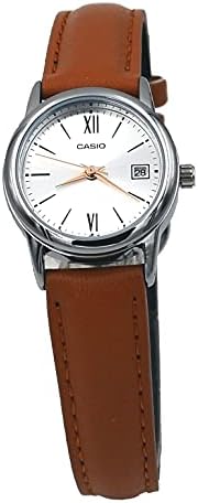 Casio LTP-V002L-7B3 Women's Standard Analog Brown Leather Band Silver Dial Date Watch
