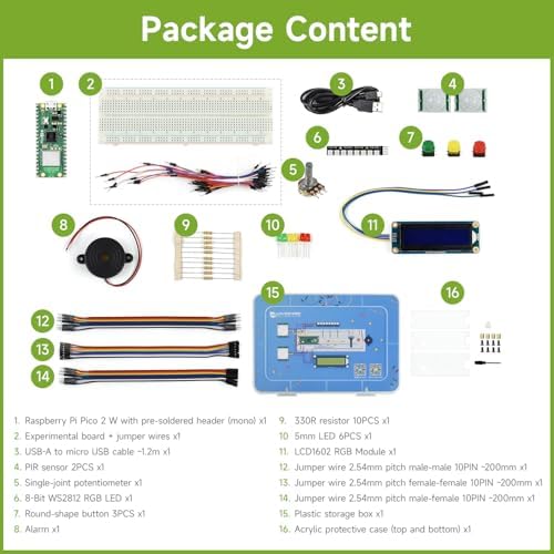 waveshare Basic Kit, Compatible with Raspberry Pi Pico 2 W Microcontroller Board, Based On Official RP2350 Chip, Dual-Core & Dual-Architecture Design, 16items
