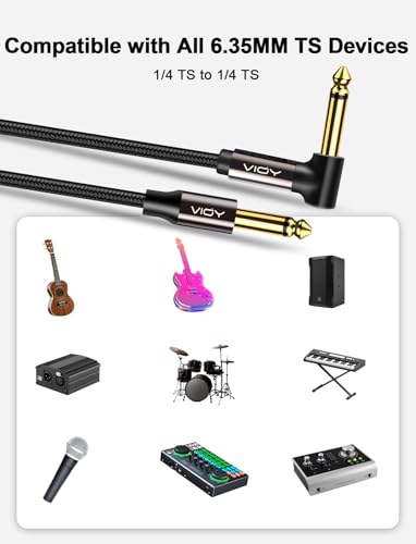 - Professional Instrument Cable: VIOY high-quality guitar cable is perfect for professional musicians and enthusiasts. It is compatible with a wide range of instruments including electric guitars, basses, synths, keyboards, and other professional audio equipment with 1/4 inch input
