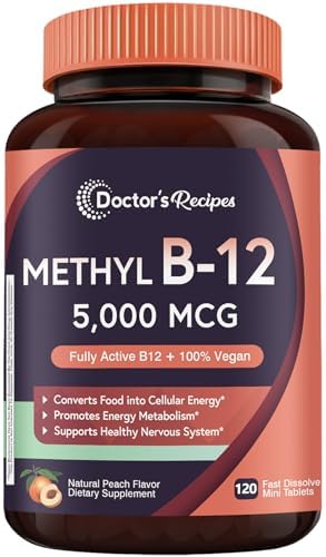 Doctor's Recipes Vitamin B12 Sublingual, Methylcobalamin 5000 mcg 120 Fast Dissolve Tablets, Natural Peach Flavor, Vegan Methyl, Energy Metabolism & Nervous System