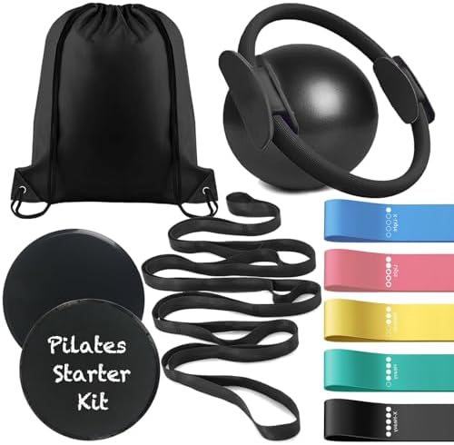 - All-in-One Pilates Essentials Kit : Includes pilates ring, yoga ball, core sliders, drawstring bag, 10-loop yoga stretch strap, and 5 resistance bands with varying levels of resistance, perfect for pilates home workout .