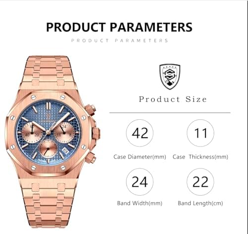 Watches for Men Titan Steel Chronograph – Bold Rose Gold Men’s Watch, Sapphire Blue Dial, Precision Quartz, Rugged & Powerful Elegant Timepiece, Relojes De Hombre Waterproof