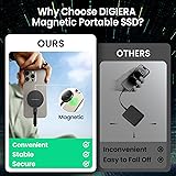 Wide Compatibility for Effortless Integration: The DIGIERA solid state drive features universal compatibility with a USB Type-C interface, working seamlessly with laptops, tablets, gaming consoles, and most smartphones. Its plug-and-play functionality means instant access for students, freelancers, and multitaskers on the go. NOTE: Only compatible with iPhone 15 series and newer. Not compatible with iPhone 14 and earlier models Magnetic Connection for Stability & Security: The innovative magnetic design ensures that the SSD external remains securely “connected” to your phone or other digital devices. You can walk and talk while shooting to describe a scene or follow a scampering subject in the woods – the DIGIERA magnetic portable SSD won’t slip and drop accidentally Ultra-Fast Transfer Speeds: When using a compatible Type-C USB 3.2 Gen 2x2 interface, the DIGIERA LPS2000M can achieve up to 2000MB/s read and 1800MB/s write speeds. This feature is perfect for users dealing with large video files, 3D modeling projects, or high-resolution photography. However, performance may be lower depending on host devices, interfaces, usage conditions, and other factors Capture and Store ProRes Videos Directly: For iPhone 15 Pro/Pro Max or iPhone 16 Pro/Pro Max users, this external SSD is a game-changer. You can record 4K 60p ProRes or 4K 120p ProRes videos directly onto the drive, freeing up space on your phone and ensuring your high-res content is securely stored. It’s ideal for mobile filmmakers or photography enthusiasts looking for smooth, uninterrupted recording Ample Storage to Shoot and Store More: This external solid state drive is available in 512GB, 1TB, 2TB, and 4TB capacities, giving you the space to store more of what matters most: family photo albums, favorite movies, thrilling games, and all the music you rock to. It’s perfect for those balancing work, creative projects, and leisure Compact & Durable Design: The DIGIERA SSD is built with a rugged aluminum casing, making it resistant to shocks (1500G), vibrations (10-2000Hz), and drops (up to 3.94 feet). Weighing just 1.58 oz and measuring 2.28 x 0.46 inches (diameter x height), this portable SSD easily fits into your pocket or bag, making it an ideal companion for professionals on the move