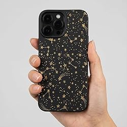 Cavka Black Case Compatible with - iPhone 12 Pro - iPhone 12-6.1 inch Golden Constellations Protective TPU Rubber Cover with Stars Cute Bumper Kawaii Design for Women Minimalistic Celestial Galaxy