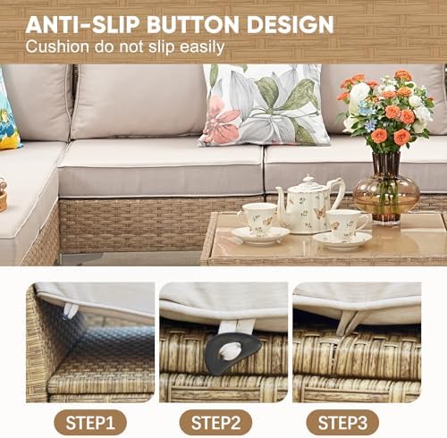 7 Piece Wicker Patio Furniture Set,Outdoor Conversation Sectional Sofa w/Coffee Table,All-Weather Outdoor Sofa with Thick and Anti-Slip Cushions for Deck,Poolside,Garden,Beige