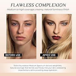 Light and Translucent - the texture is light and does not give a heavy feeling to the skin after application, presenting a natural and transparent makeup, as if the “nude makeup” effect. lsolation Protection - The 4 in 1 Foundation Medium Spectrum contain SPF 50 sun protection to shield your skin from harmful UVA and UVB rays. Coverage Foundation Makeup - it delivers light-to-medium coverage to effectively conceal fine lines. Enjoy a breathable, hydrating foundation that maintains its coverage for a full 24 hours. 4-in-1 Versatile Foundation - This liquid foundation effortlessly adapts to your natural skin tone, as the makeup is thoroughly blended into skin, it intuitively transforms to your skin tone for all day, natural looking color in your perfect shade. Daily Use - Suitable for all skin types. Our unique color-matching formula protects and moisturises the skin as it works to even out your complexion
