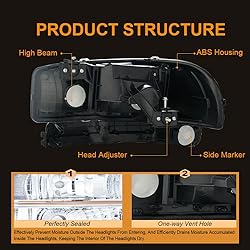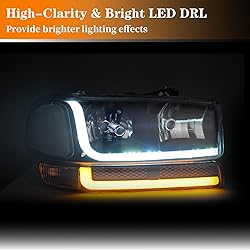 - LED DRL Headlights Kit Headlight Assembly Compatible with 1999-2007 GMC Sierra/1999-2006 Yukon Replacement Headlamp Black Housing Clear Reflector