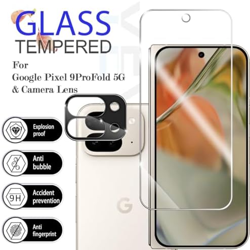 Screen Protector for Google Pixel 9 Pro Fold, [2+2 Pack] Tempered Glass for Pixel 9 Pro Fold & Camera Lens Protectors[Ultrasonic Fingerprint Unlock] [Case Friendly] [Bubble-Free] 6.3 Inches