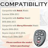 SUPALAND Keyless Entry Remote Start Control Key Fob Replacement Fits for Chevy Impala 2006 2007 2008 2009 2010 2011 2012 2013 Chevrolet Impala Limited Monte Carlo Cadillac DTS Buick Lucerne OUC60270
