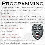 HIGH-QUALITY: Every Single Keyless Entry Remote Start Control Car Key Fob is Fully Pre-tested by Professional Locksmith Tools before Shipping. All Our Key Fobs are Pre-installed with Battery and Electronics. COMPATIBILITY: Compatible with FCC ID OUC60270 & OUC60221. Please Check Our Product Description and Vehicle Fitment Tool for Full Compatible Vehicles List. This Remote Key Fob Replacement Is Compatible with Chevrolet Impala 2006-2013 Chevrolet Impala Limited 2014-2016 Chevrolet Monte Carlo 2006-2007 Cadillac DTS 2006-2011 Buick Lucerne 2006-2011. REPLACEMENT: This Keyless Entry Remote Control Car Key Fob Replacement Is Compatible with Part Numbers: 10337867 15912860 20935331 22952176. PROGRAMMING: 2010+ Vehicles Required Qualified Locksmiths or Dealership for Programming. Self-Programming Only Available for Vehicles Before 2010. PACKING LIST: 1 X Keyless Entry Remote Start Control Key Fob with Electronics and Battery Pre-Installed. Ready to Program.
