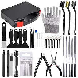 Comprehensive Tool Set: This kit offers a complete range of post-processing tools for 3D printing, including deburring tools, removal tools, needle files, brushes, cutters, craft knife, tweezers, and drills, which meet your 3D print finishing needs Enhances Print Precision and Quality: By using precise tools to remove burrs and residues from prints, this kit improves the surface quality of 3D models, making the final product smoother and more refined, thus enhancing print precision and overall appearance Multi-Purpose Design: Beyond 3D printing, these tools are also suitable for other crafting and DIY projects, such as model making, miniature scene repairs, and electronics repair, making it a versatile tool kit Cut-Resistant Gloves:Designed for comfort and flexibility, these gloves allow users to maintain dexterity while performing delicate tasks without sacrificing operational efficiency. They effectively prevent injuries from blades and sharp objects After-Sales Service: If for any reason you're not satisfied with your purchase, please send email to us. Our dedicated customer service team will respond within 24 hours and assist you with resolving the issue