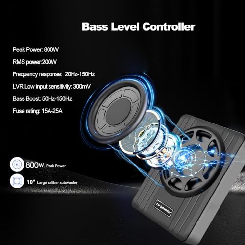 - 【 High qu*ality 800W ultra-thin car subwoofer 】Enjoy outstanding heat dissipation with the subwoofer car's cast aluminum shell, which offers 3x improvement in heat dissipation compared to traditional iron shells, keeping your subwoofer cool even in tight spaces. Adjust the volume and bass to your liking with the included remote control, featuring gain, bass boost, and crossover controls, for perfect sound at any volume.