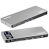 The 5 Display Dock at a Glance: The UD-7400PD Plugable docking station drives up to 5 high-res displays (3x 8K, or 1x 8K + 4x 4K), with up to 140W laptop charging + 30W device charging, 2.5Gbps Ethernet, USB and USB-C ports. It’s what multitasking would look like if multitasking multitasked Extend to 5x 4K Displays: The USB-C docking station offers 1x HDMI 2.1 (up to 8K 30Hz), 1x HDMI 2.0 (4K 60Hz), and 3x USB-C DisplayLink (4K 60Hz each) so you can extend to up to 5x 4K 60Hz screens or 3x at 8K 30Hz. Note: The DisplayLink software application must be installed on a Windows or Mac computer for the dock’s HDMI video outputs to function. This process is typically automatic on Windows, manual install required on macOS. Made for the IT Pro: The UD-7400PD comes equipped with DockTag On Screen Display (OSD) to quickly display the dock’s status, asset details, and a QR code for fast access to set up instructions and support resources Incredibly Compatible: DisplayLink (driver required) universal docking station features HDMI & USB-C video ports. Works with video-enabled USB-C or Thunderbolt Windows 10+ or macOS 11+ hosts; even base M1/M2/M3/M4 Macs can connect 5 4K displays. Note: HDCP video (Netflix, Hulu, etc.) not supported Lifetime Support: This USB-C and DisplayLink Docking Station has been designed with reliability at its core and was built to meet the deployment demands of IT departments and the ease of use necessary for home offices. Includes lifetime support from our North American team of connectivity experts