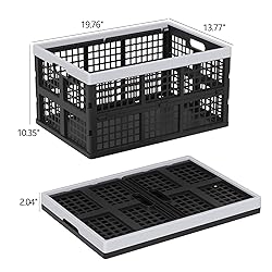 Open size: 19.76" x 13.77" x 10.35", fold size: 19.76" x 13.77" x 2.04" 4-pack foldable plastic storage basket, hollowed out decoration, simple and beautiful The crate is only 2.04 inches thick after being folded, so it can be easily put into a narrow space Made of high-quality plastic, its sturdy structure allows it to carry heavy objects without easily falling apart Suitable for offices, kitchens, storerooms, children's rooms, outdoor picnics and other place