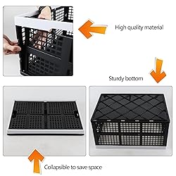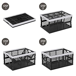 Tyminin 40 L Large Collapsible Storage Crates, Black Plastic Stackable Storage Crates, 4 Pack