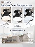 ZMISHIBO 52 Inch Ceiling Fan with Light, App&Remote Control, Flush Mount Low Profile, Dimmable 20W LED Light, Quiet Reversible Motor for Bedroom, Living Room, Apartment, Black