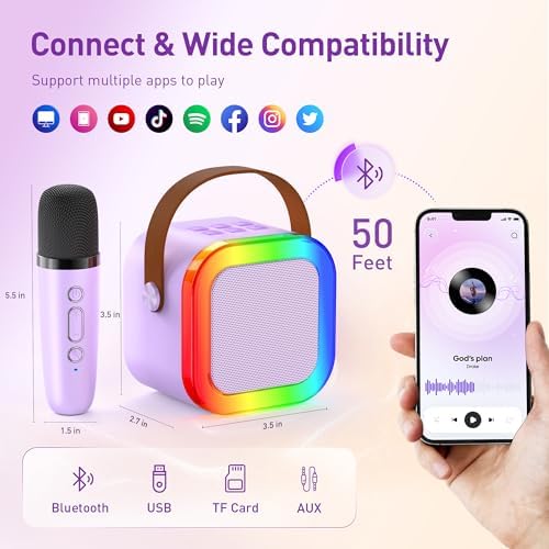 - Powerful Clear Sound: designed with an advanced audio processing chip and high-sensitivity speaker, this karaoke machine delivers rich, powerful, and distortion-free sound; Switch between 5 exciting voice effects for a more engaging singing fun; Karaoke Machine with colorful lights supports Bluetooth, USB, and AUX connections, allowing effortless pairing with various devices for instant karaoke fun