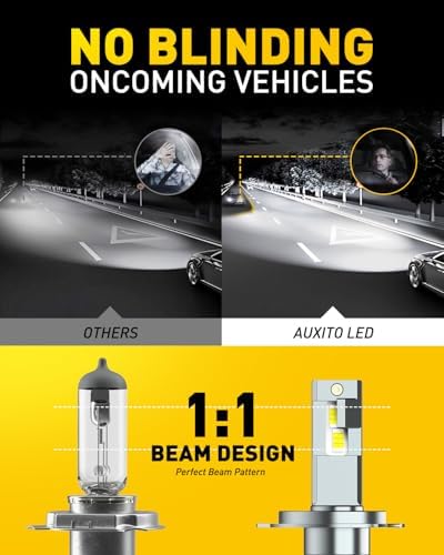 - Quick & Easy Installation: The AUXITO H4 light bulbs are designed with a mini-size that closely mimics halogen bulbs for a perfect fit, eliminating the need for modifications. Featuring a non-polarity socket and free from radio interference, these bulbs are a breeze to install, thanks to their plug-and-play technology. Complete your hassle-free upgrade in under 10 minutes.