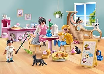THE PURRFECT SPOT: Visit the PLAYMOBIL Cat Café to enjoy a cup of coffee and cake. GREAT GIFT FOR YOUNG CAT LOVERS: With so many nooks and crannies for the cats to curl up into and enjoy each one will feel comfortable. Feel free to interact with the cats too. They love playing with the mouse on a string. COMBINE WITH OTHER PET-GROOMING THEMED SETS (#71742, 71743, 71745-71748 – sold separately) for more fun! PLAY FUN FOR CHILDREN 4 YEARS OLD AND UP: Ideal for children's hands thanks to its age-appropriate size and safe rounded edges. Encourages your child's imagination. CONTENTS: Set includes two adult figures, one child figure, cats, cat condo, table, chairs, cat toys, and other accessories. THE ORIGINAL: PLAYMOBIL has been inspiring children and adults since 1974. High-quality and durable materials ensure your child will be playing with their PLAYMOBIL for many years to come.