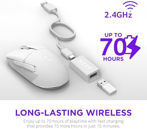 Ratón de Juego Inalámbrico NZXT Lift Elite - Ultraligero de 57 g - Tasas de sondeo 4K/8K, Interruptores Ópticos, Sensor Óptico de 26K DPI - Batería de 70 horas - Asas Laterales de Goma - 5 Botones Programables - Blanco