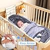 - PERFECT SLEEPING BAG FOR CRIB: The baby sleeping bag has 4 zippers in 2 sides, which will help you easily adjust the coverage of the sleeping bag to regulate your baby's warmth according to changing temperatures. Also, this will be good for completing your baby care work like changing diapers and shoes without taking baby out of footmuff, and is fairly easy for baby in and out.