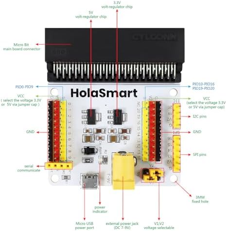 - The microbit sensor shield extends some commonly-used serial communication interfaces into pin or female headers with 2.54mm pin pitch, such as I2C and SPI communication pins. So that this shield will allow communication between micro:bit control board and other communication devices.