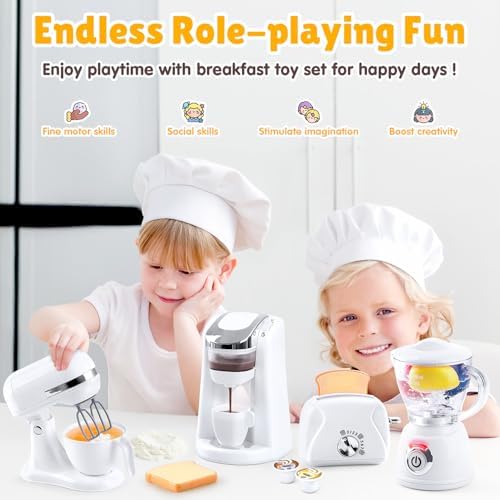 Kids Toy Kitchen Sets, Play Kitchen Accessories for Kids Ages 4-8 3-5, Kitchen Appliance Toys, Blender, Coffee Maker Machine, Mixer, Toaster, Pretend Play Toys for 4 Year Old Girls Toddlers, White