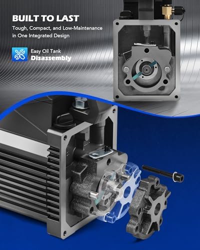 - Minimized Oil Mist and Noise: With its oil mist-free cap on the combined oil fill/exhaust port, our a/c vacuum pump reduces oil mist for a cleaner and safer work environment. It also runs at or below 70 dB, ensuring a quieter & more comfortable workspace