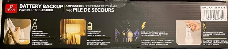 - Light up your home effortlessly, even during power outages, with the Globe Battery Backup LED Bulb 6-Pack. Designed for versatility and reliability, these bulbs provide consistent, warm illumination with the added benefit of built-in battery technology.