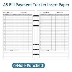 - DURABLE AND HIGH QUALITY - This budget system refill features 100 gsm high quality acid free paper, 5.5 x 8. 5 inches, providing a smooth writing experience. The loose leaf budget paper refillis thick and durable, preventing ink from bleeding through, ensuring that there corded information remains clear and long-lasting. UNIVERSAL COMPATIBILITY - Designed with a 6-hole punch, these monthly bill pay checklist paper refills are perfect for 6-ring binders, works perfectly for Filofax A5 Organizer / Clipbook, Kikki.K (Large),Carpe Diem (A5), Foxyfix (A5), Gillio (A5) Dokibook (A5, Large), Van der Spek(Manager) etc..COMPACT AND PORTABLE DESIGN - Bill paymen ttracker refill is designed in a handy size, 5.5" x 8. 5", making it easy to carry and store. Monthly bill pay checklist paper refills will help you to record and review at any time, manage your finances systematically, avoid omissions or duplicate payments, spot discrepancies or fraudulent charges and errors, and help you to see where your spending is going and allow you to cutback on your spending and budget more.COMPREHENSIVE PAGE COUNT - With a total of 100 sheets/200 pages, double-sided printing, this monthly bill pay refill is undated and provides ample space to record and manage your various bill payment details. Each budget planner refill is designed with a clear bill record layout, including sections for bill description, due date, amount due, amount paid, balance, etc., and includes a NOTES section to help you to make notes about a particular bill.VERSATILE AND EFFICIENT - This monthly budget forms refill makes budgeting clear and accurate with its black, white and gray design. This bill pay tracker paper refill can also be used to record other financial information, such as budget planning, expense tracking, income recording, etc., making bill refills a versatile financial management tool. This monthly budget refill makes an ideal gift for your family members, friends, and colleagues.