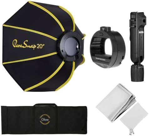 Take your photography to the next level with the Glow ParaSnap PS-B20K 20" Octagonal Softbox for Speedlight, an essential tool for photographers who prioritize speed, efficiency, and superior lighting quality. This innovative softbox is designed with Glow's proprietary SterlingFibre Silver Lining, which redefines light efficiency by ensuring your subjects are illuminated with brilliance and precision. Its compact 20-inch size is ideal for portrait, fashion, and creative photography, whether you're in the studio or on location.The included Glow OTA-S Adapter seamlessly integrates with your on-camera flash, allowing for quick, secure, and flexible lighting setups. This adapter supports a range of accessories available for the OTA ParaSnap System, such as a 40 Degree grid, diffuser, or color correction filter kit, offering enhanced creative control and precision. The OTA-S Adapter locks into the ParaSnap Softbox with a simple twist, ensuring a firm hold using a robust magnetic ring that matches the circular head of your flash. It connects effortlessly to the Glow ParaSnap Pistol Grip, which provides a 120 Degree tilt adjustment with a locking trigger for precise light positioning.One of the standout features of the ParaSnap is its rapid setup mechanism. With a single motion, the softbox expands and locks into its classic octagonal shape, significantly reducing setup time compared to traditional softboxes. This design is favored by photographers for its ability