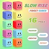 【16 Pack Face Stress Cube】Our fidget stress cube set includes 16 colorful cubes.The slow rising stress cube is designed smile face, feature smiling facial expressions that will brighten up your day and boost your mood 【Durable and Safe】Our slow-rise cubes are made from high-quality, durable materials; It contains no BPA, phthalates or latex. Each colorful cube is crafted for soothing comfort and ultimate elasticity, perfect for pulling, squeezing, and tossing to create a calming sensory experience 【Adults and Kids Gift Idea】This cute and adorable squisy ice cubes are perfect for office, classroom, traveling, or aboard an airplane, these anxiety relief toys keep you focused and entertained. It's a great sensory toy and gifts for party favors,classroom prize,birthday gifts 【Party Favors】1.3 inches per cube,Stress cube ice squishy stress balls pack as a surprise gift great for almost occasions like Easter basket stuffers fillers, goodie bags stuffers, Carnival stress relief toys, pinata filler toys, teaching aids. Novelty gifts to surprise your kids and friends 【Portable and Convenient】Take your stress cube with you wherever you go, whether it's in your pocket, bag, or desk drawer, so you can have instant access to relaxation and peace of mind whenever you need it