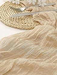 Generic 1 Piece Champagne Color Rustic Style Gauze Table Runner, Pleated, Medium, 35.43' x 118.11'